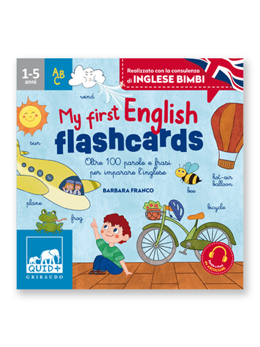 Il modo migliore per imparare una seconda lingua è quello di utilizzarla nella vita di tutti i giorni. Grazie al gioco My First English Flashcards, alleneremo il nostro bambino a dire le sue prime parole in inglese, dando spunti non solo per ampliare il vocabolario ma anche per utilizzare semplici frasi in qualsiasi momento della giornata! Il kit contiene 35 carte buffamente illustrate con tante parole che fanno parte della quotidianità e un un ricco frasario per accompagnarlo nel percorso di acquisizione della lingua inglese. Nella parte dedicata agli adulti, realizzata in collaborazione con Sara di “Inglese Bimbi”, scopriremo come utilizzare le flashcard nella vita quotidiana: facili e veloci da utilizzare, stimoleranno la memorizzazione visiva del bambino senza